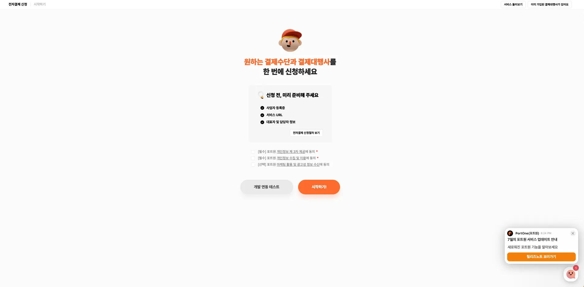 • 일부 PG사는 추가 접수 절차가 필요하여, 포트원에서 별도 안내된 이메일을 참고하시어 진행을 부탁드립니다.