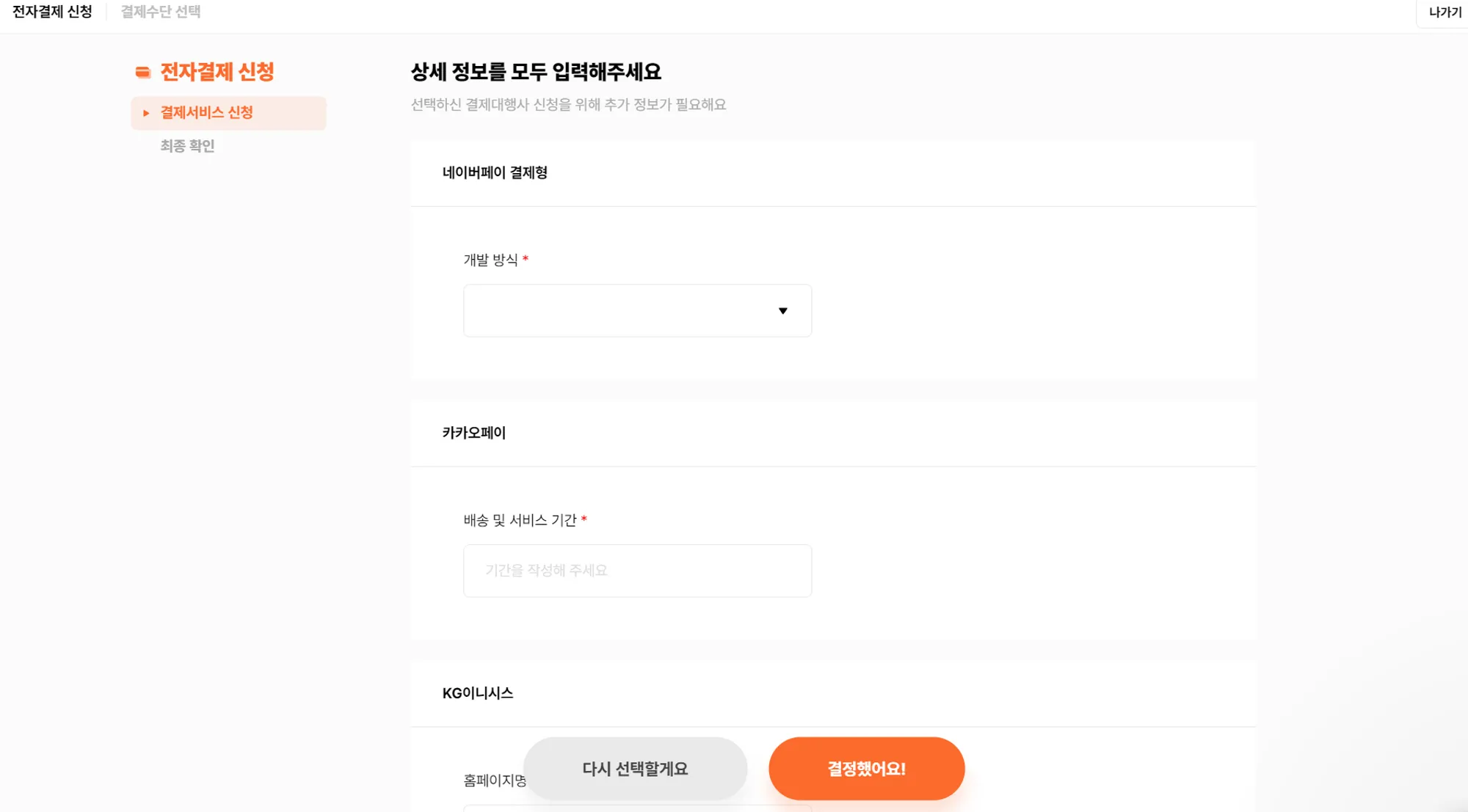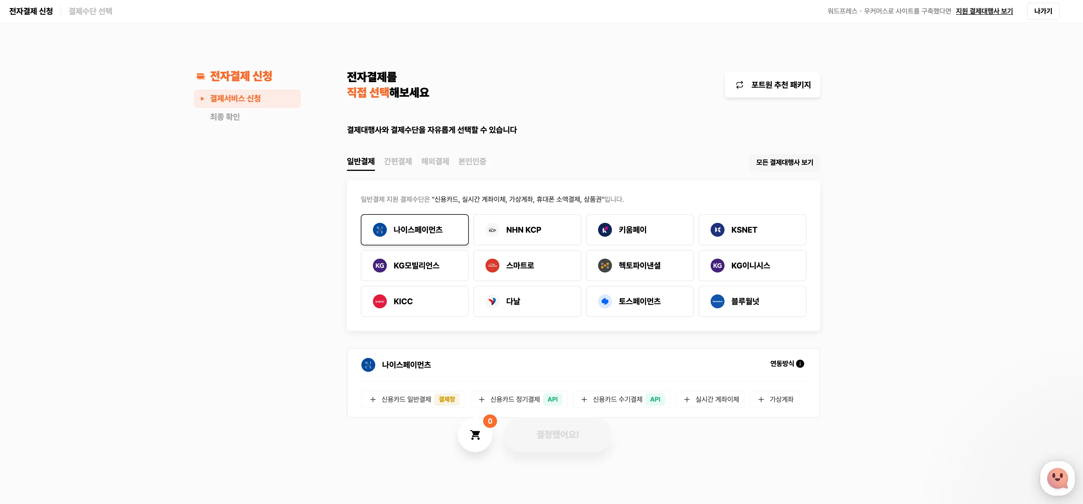 결제대행사 직접 선택하기