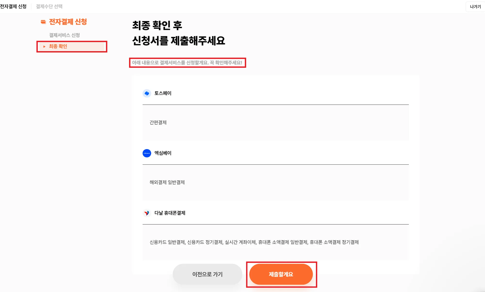 전자결제 신청